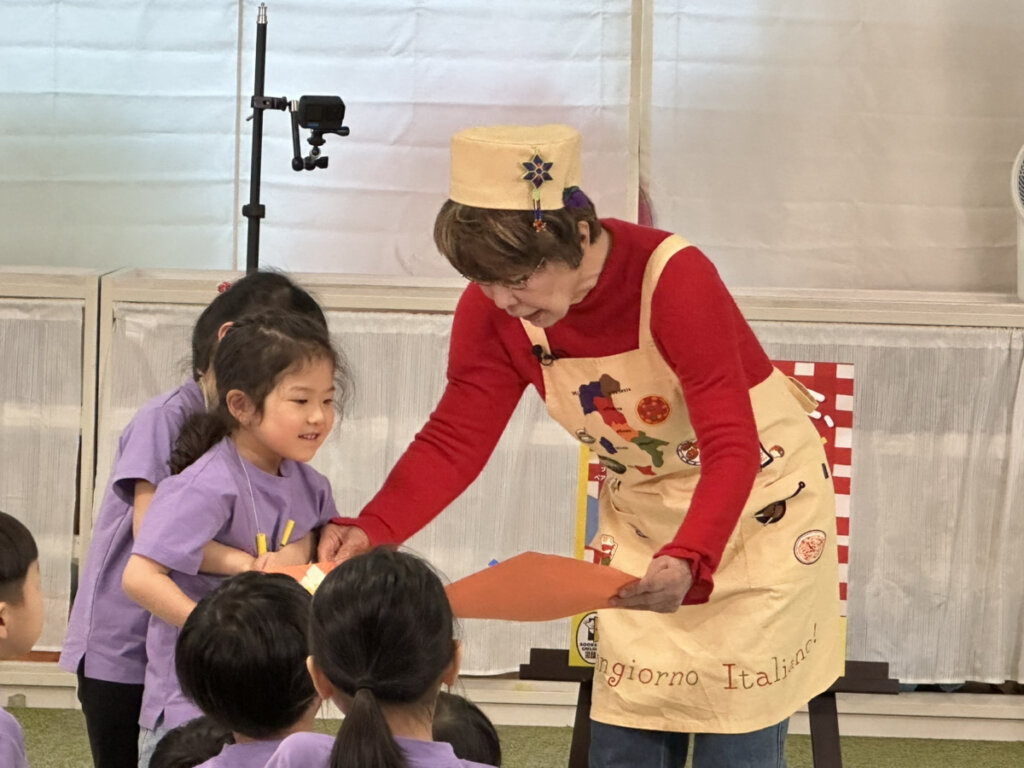 「みんな、パスタって知ってる? 今日は、パスタの絵本をみんなに読みたいと思います!」