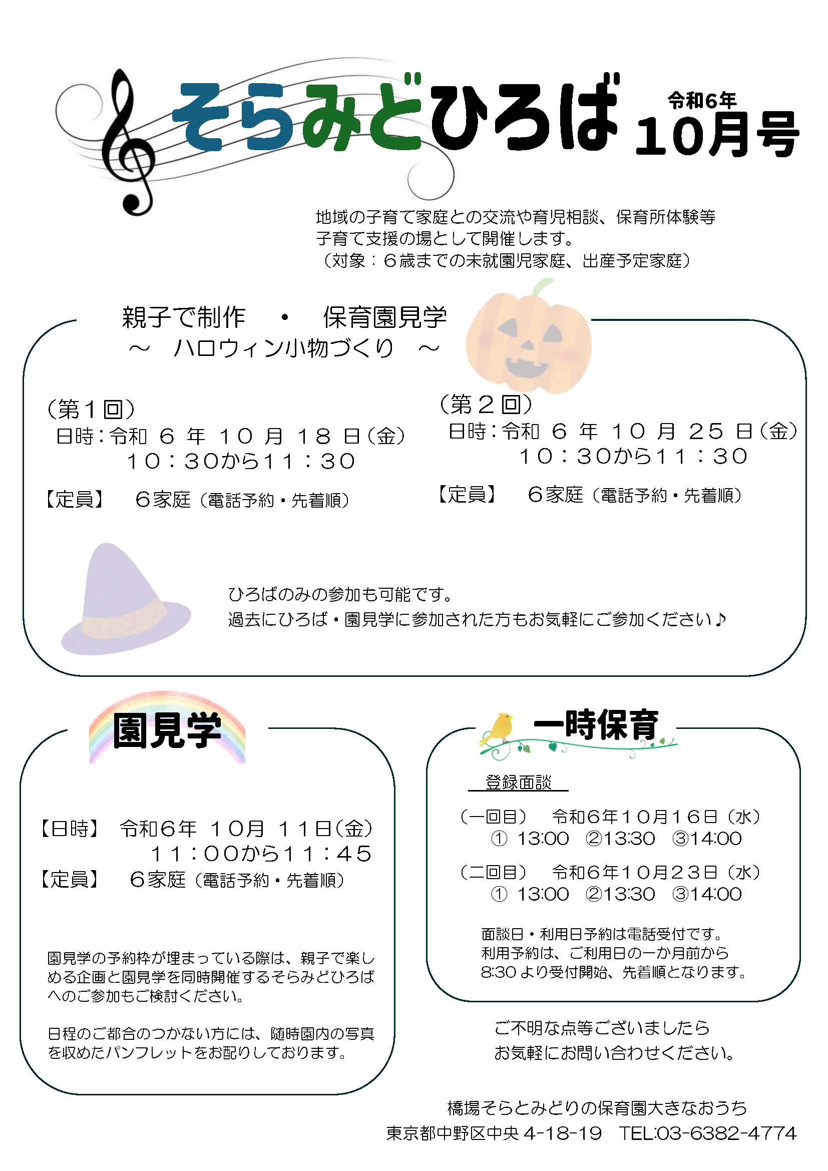 【子育て支援】そらみどひろば 令和6年7月号 子育て支援・園見学開催のお知らせ