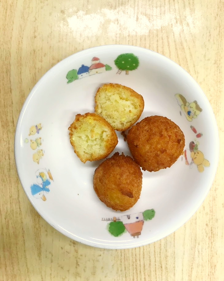 4.鍋で適量の油を熱し、ディッシャー等で生地を成型して揚げる