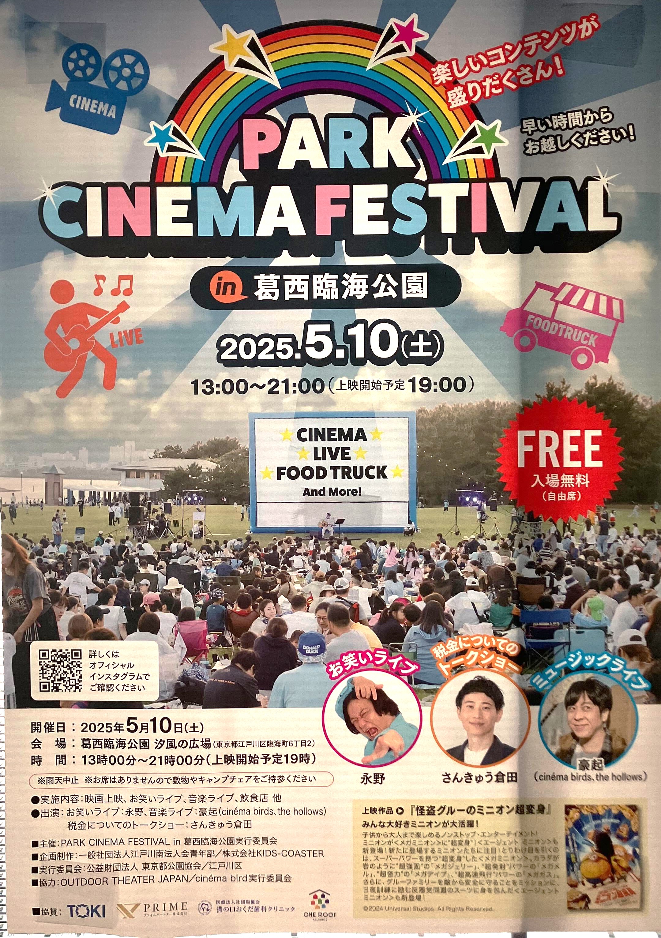 2025年5月10日(土)に葛西臨海公園で開催されます、PARK CINEMA FESTIVAL in 葛西臨海公園にブース参加いたします。