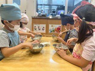 10月は幼児クラスでクッキング活動としておにぎり作り・大学芋のタレ作り・マフィン作りを各クラスで行いました。朝から楽しみにしている様子があり、説明の時にはとても真剣に聞く姿が多く見られました。また、お友だちと「こうだっけ?」「よく混ぜるとつぶつぶがなくなるんだよ!」「もっと混ぜる?」など相談しながら行う様子がありました。今後も子どもたちのやりたい気持ちを大切にしながら、クッキング活動を行っていこうと思います。