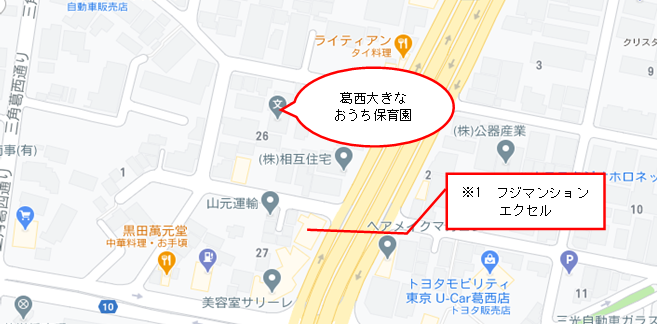 葛西小・中学校とも連携をしますが、混雑や倒壊等の理由により避難が出来ない場合には、近隣マンション(※1フジマンションエクセル)の5階以上に避難します。
