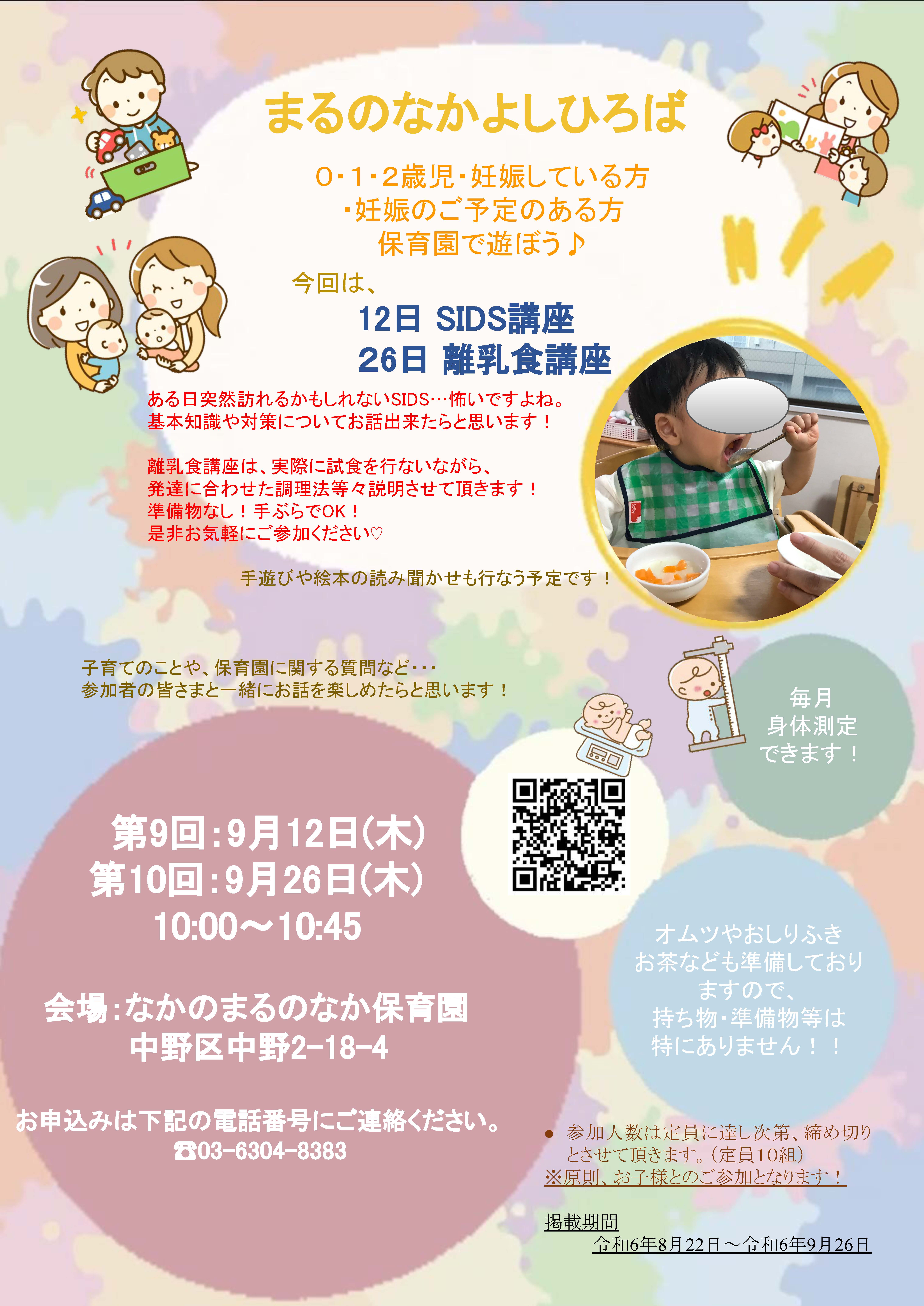 【地域交流】まるのなかよしひろば SIDSと離乳食講座開催のお知らせ