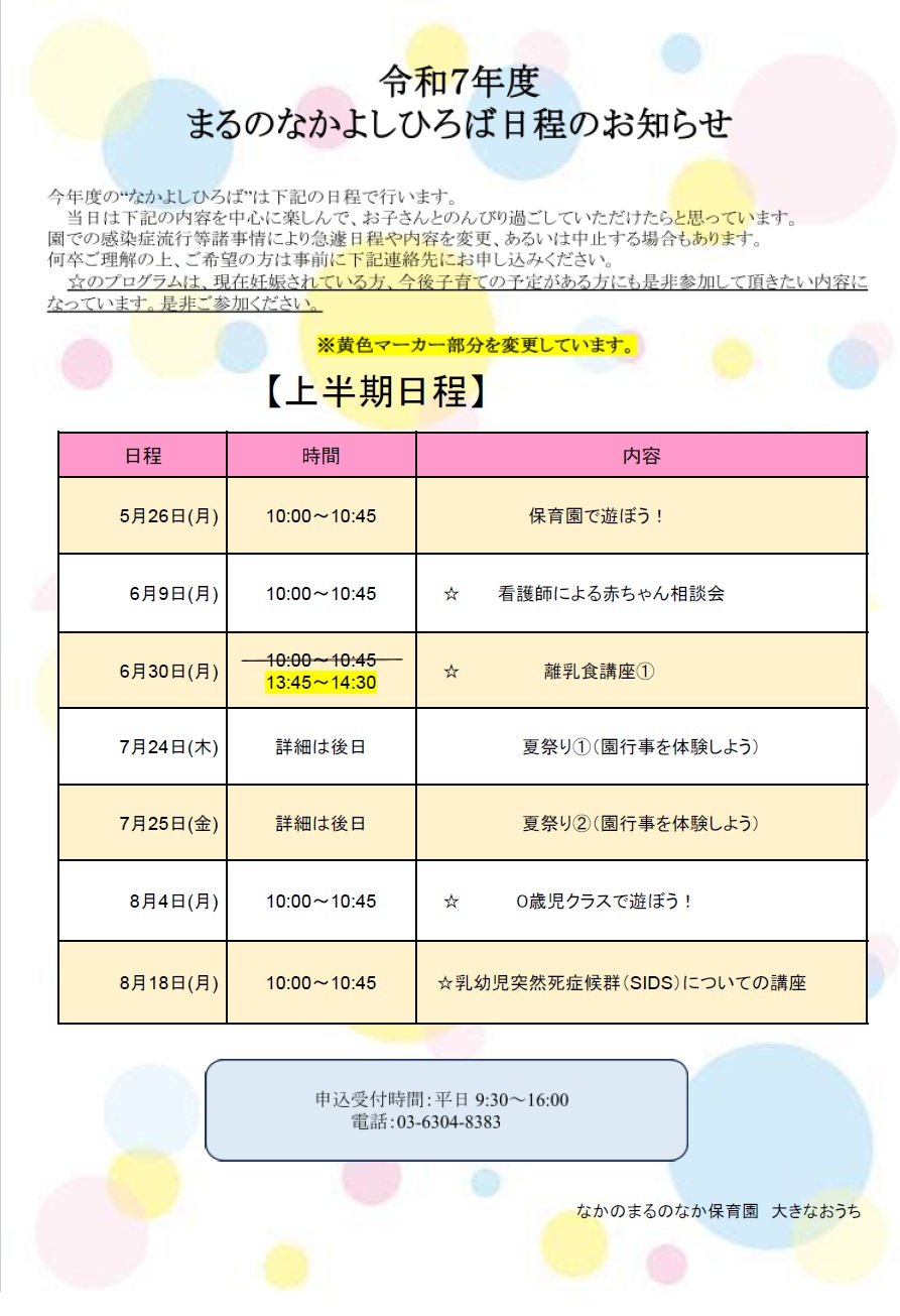 今年度の“なかよしひろば”は上半期の予定です。