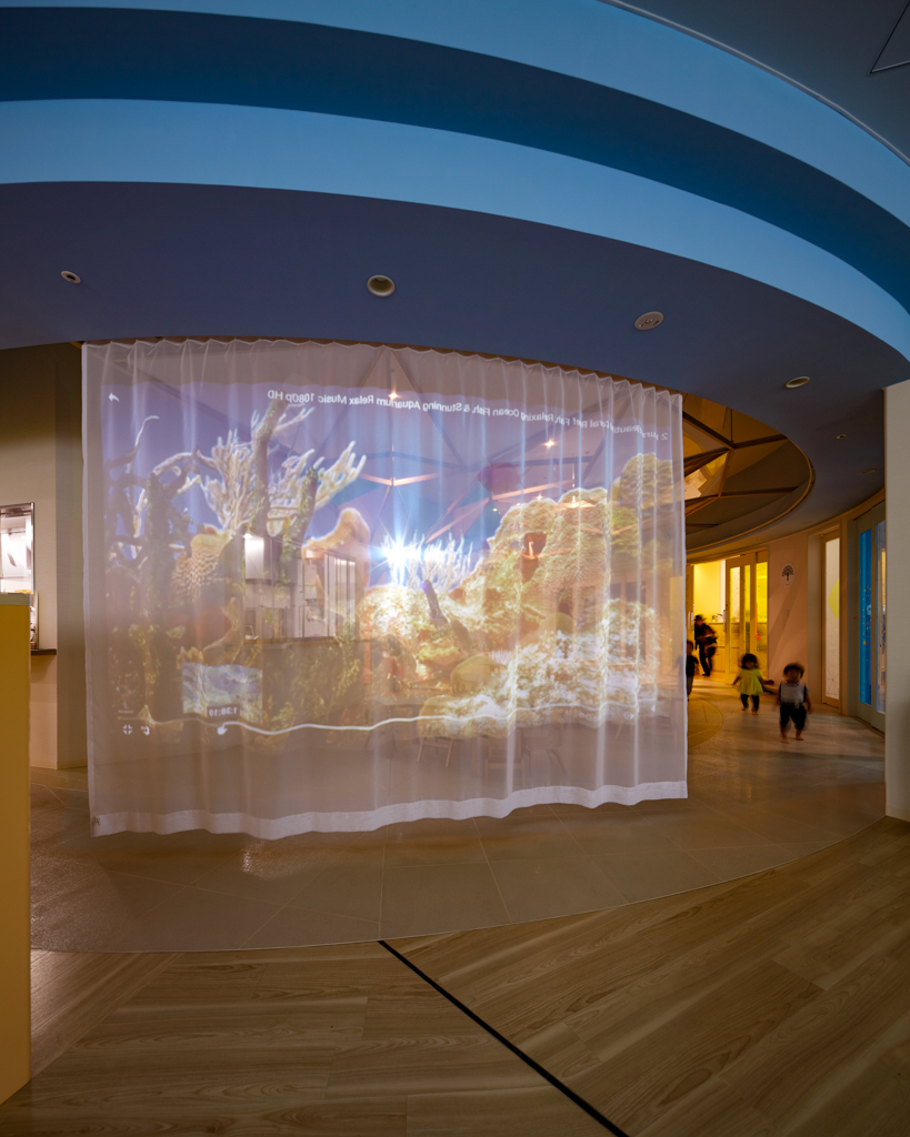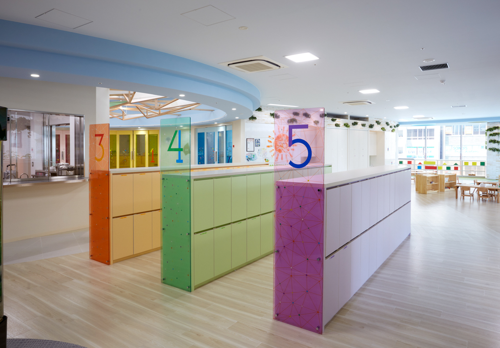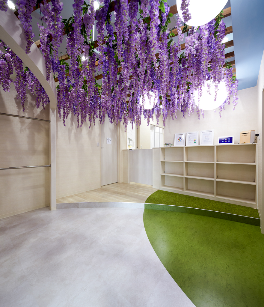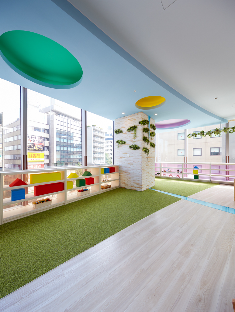 駅前タワーの中で、開放的な光が降り注ぐ中世ヨーロッパの庭が体現された保育園