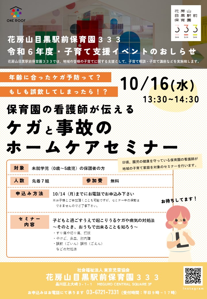 【子育て支援イベント】ケガと事故のホームケアセミナー(10月保健講座)
