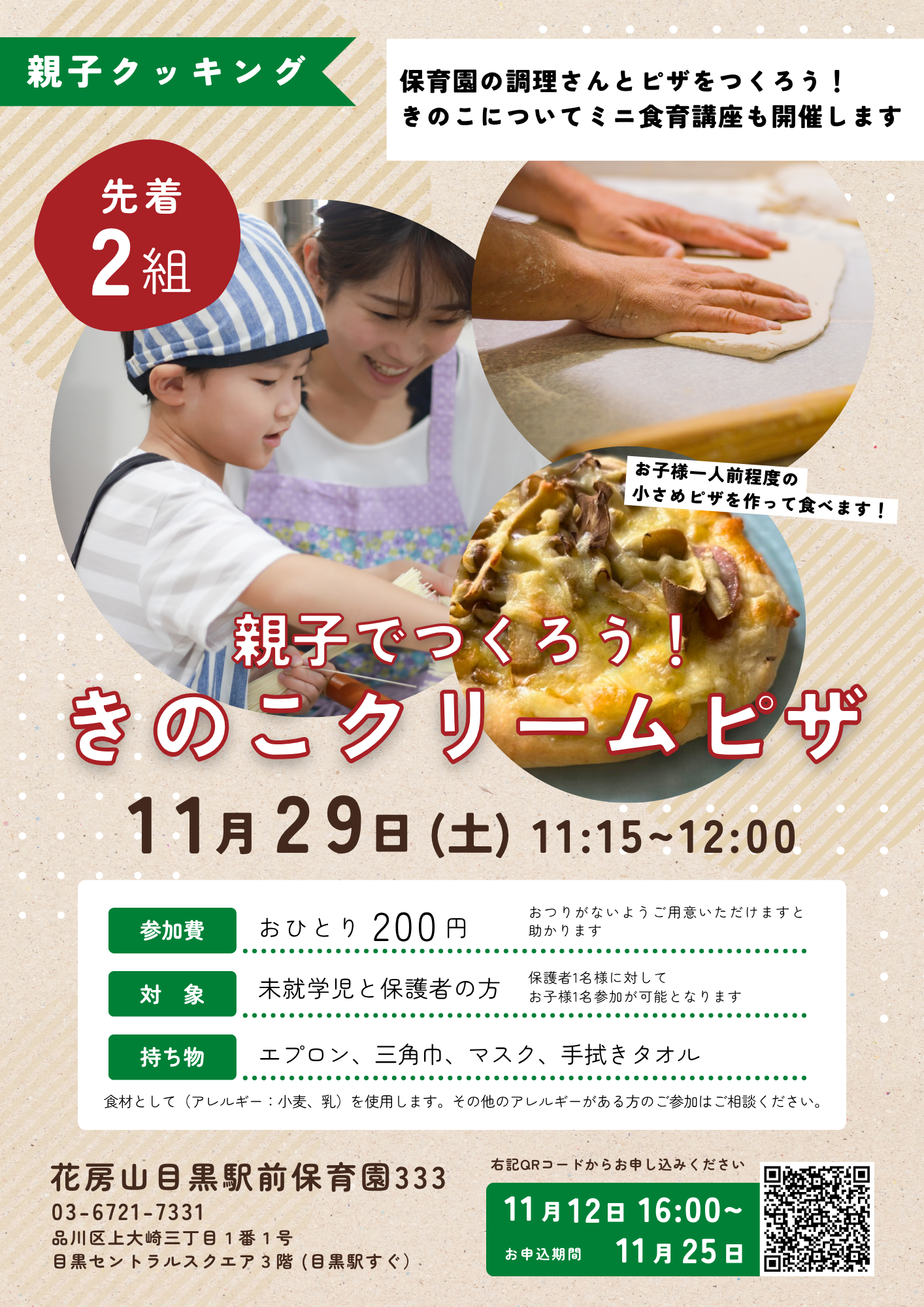 | 開催場所 | 花房山目黒駅前保育園333 ランチルーム |