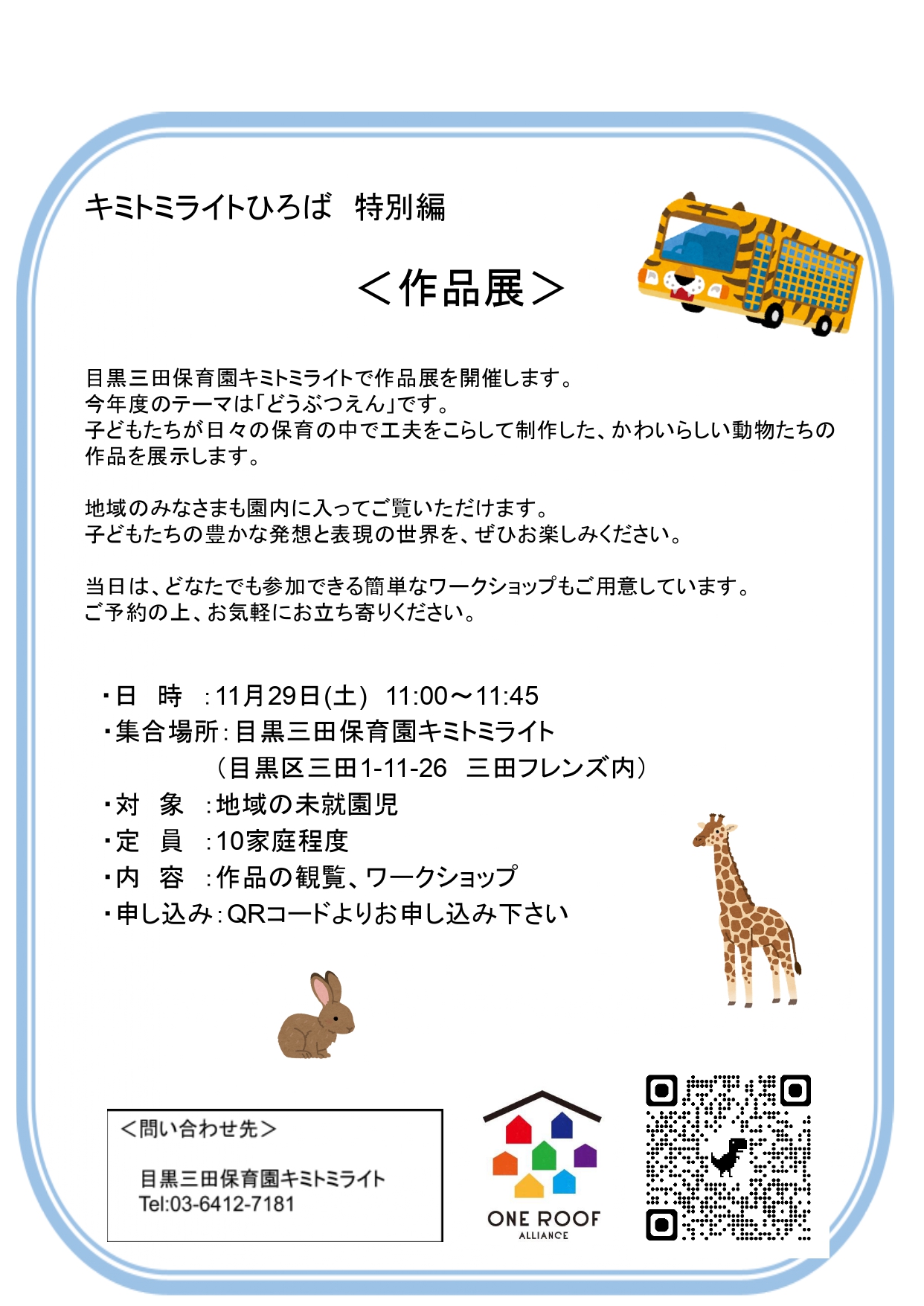 目黒三田保育園キミトミライトで作品展を開催します。