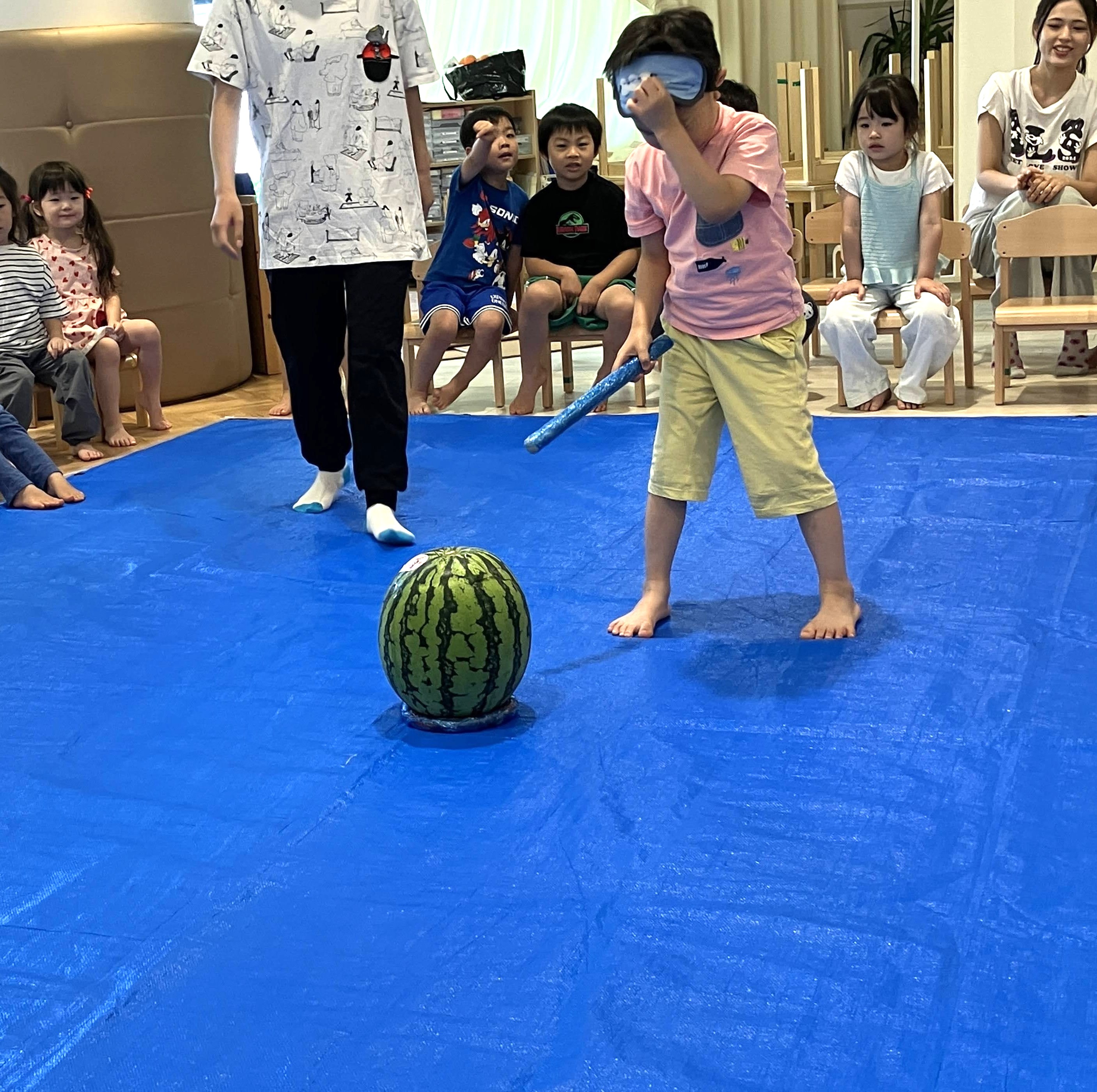 目で見て、体で感じて、舌で味わう——今日はスイカ割り大会