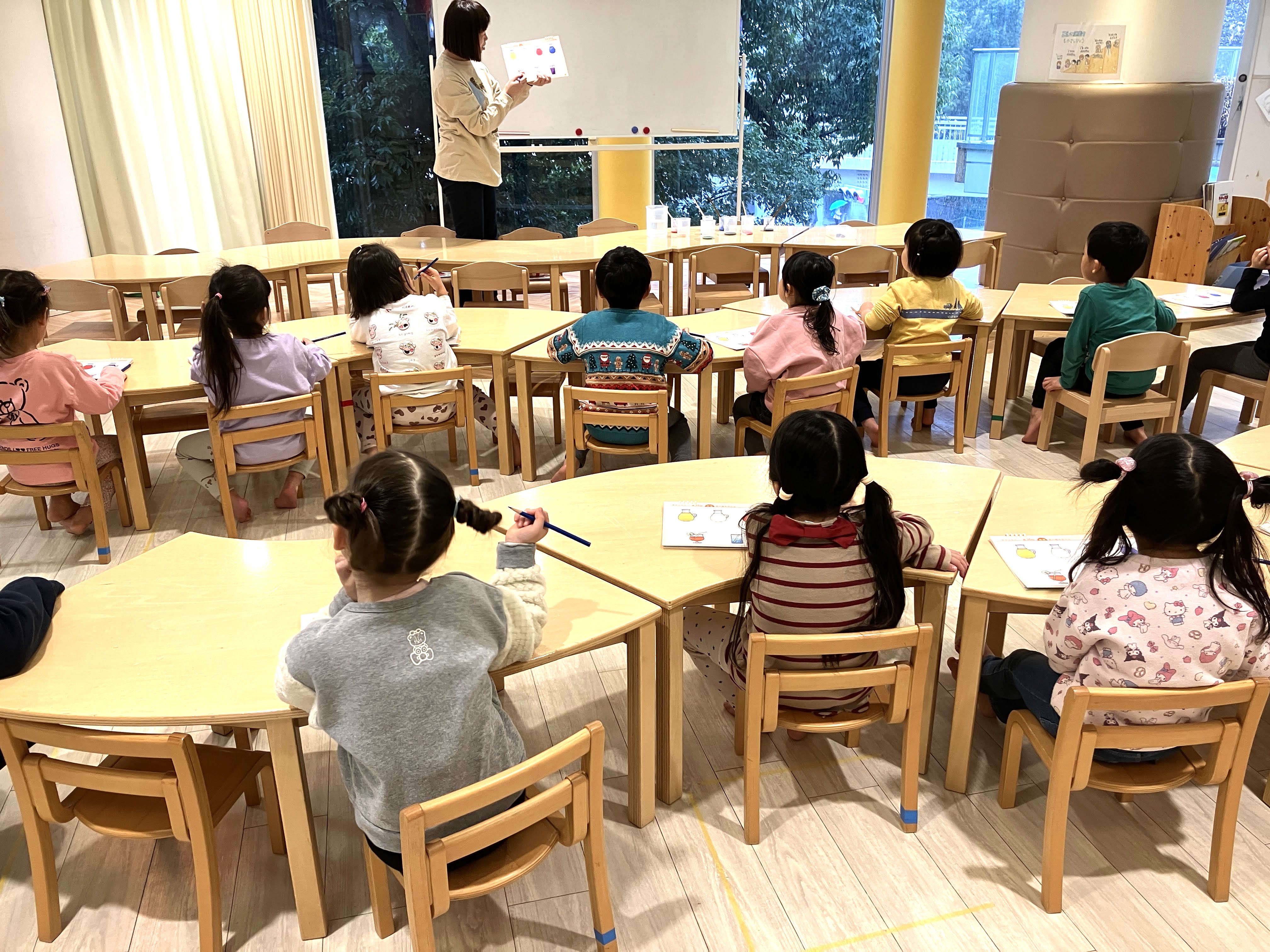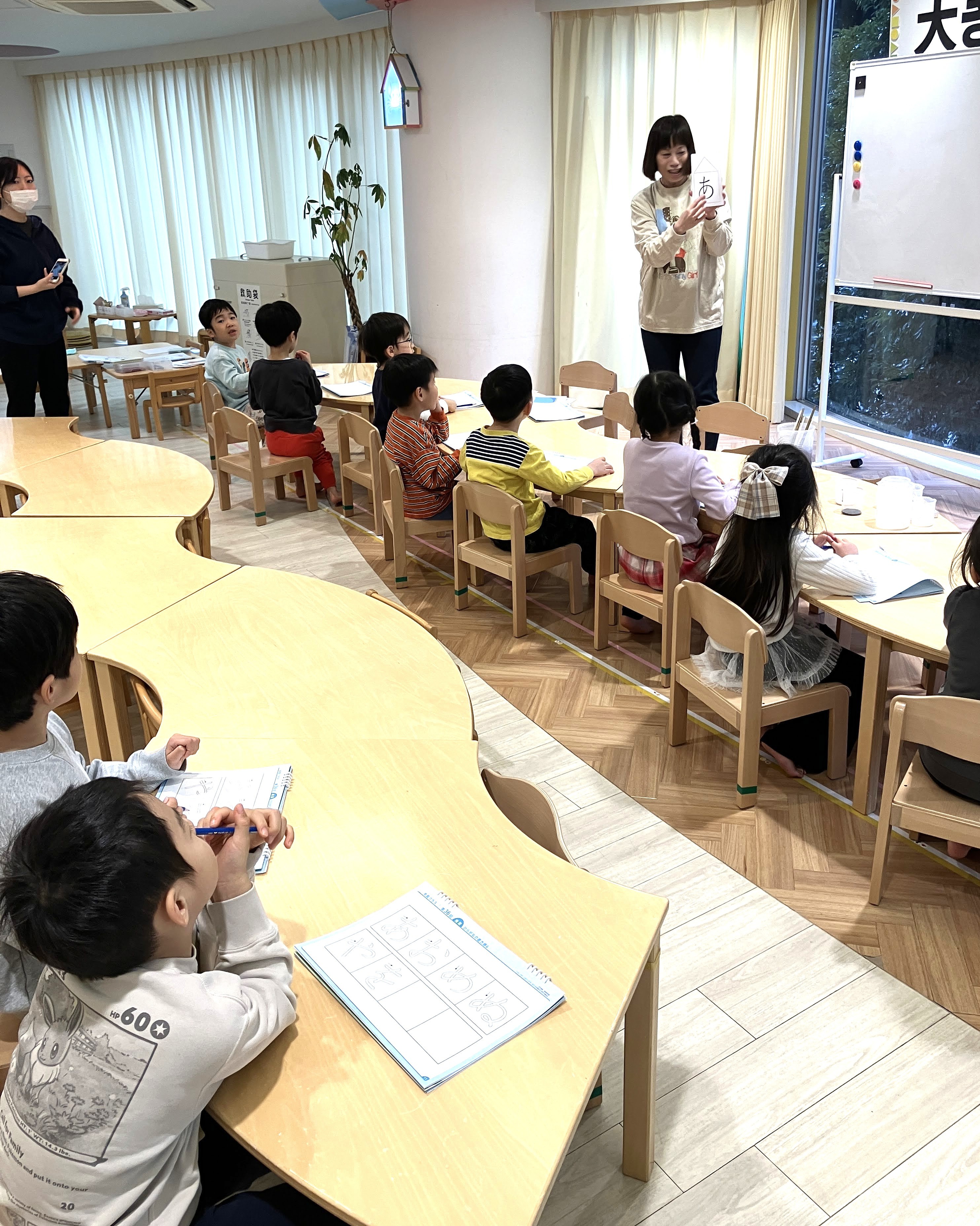 今日はは教材開発者が3・4・5歳児クラスを直接指導