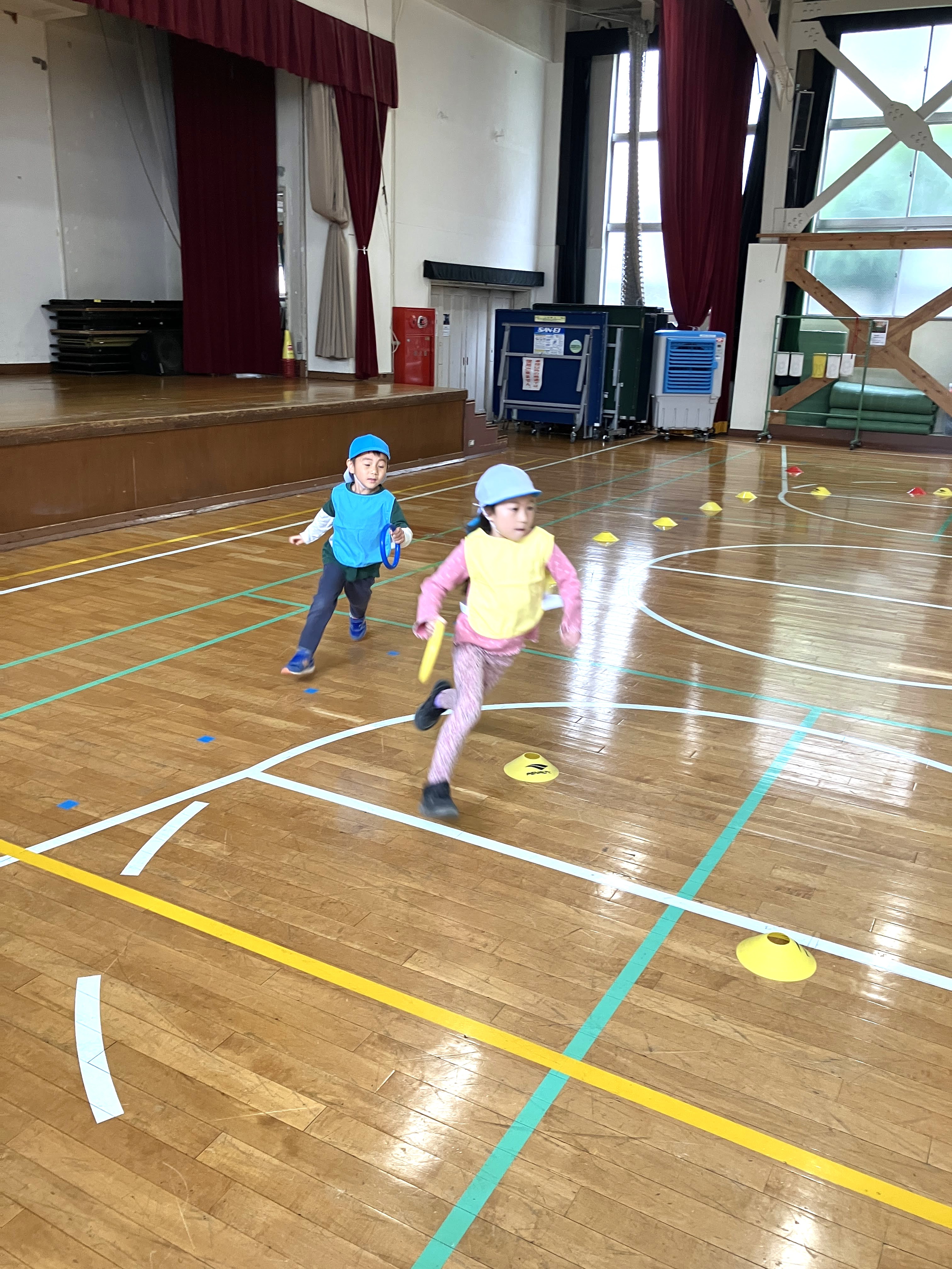 園舎や園庭でも日々体を動かす遊びは行っていますが、子どもたちはいつもよりもっと体を動かして楽しんでいます。