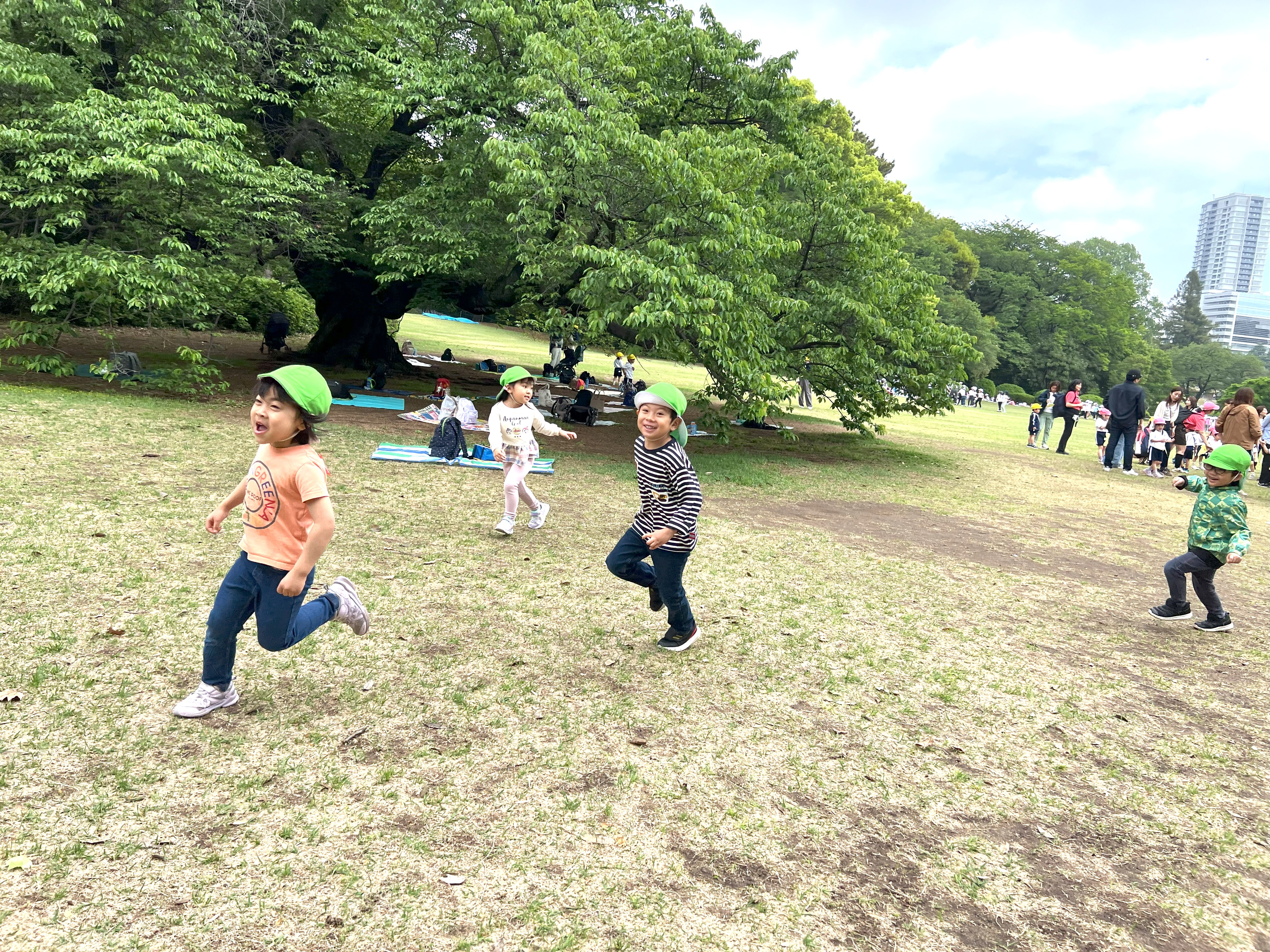 新宿三つの木保育園もりさんかくしかくの園舎は、眼前に新宿御苑の森が広がっています。