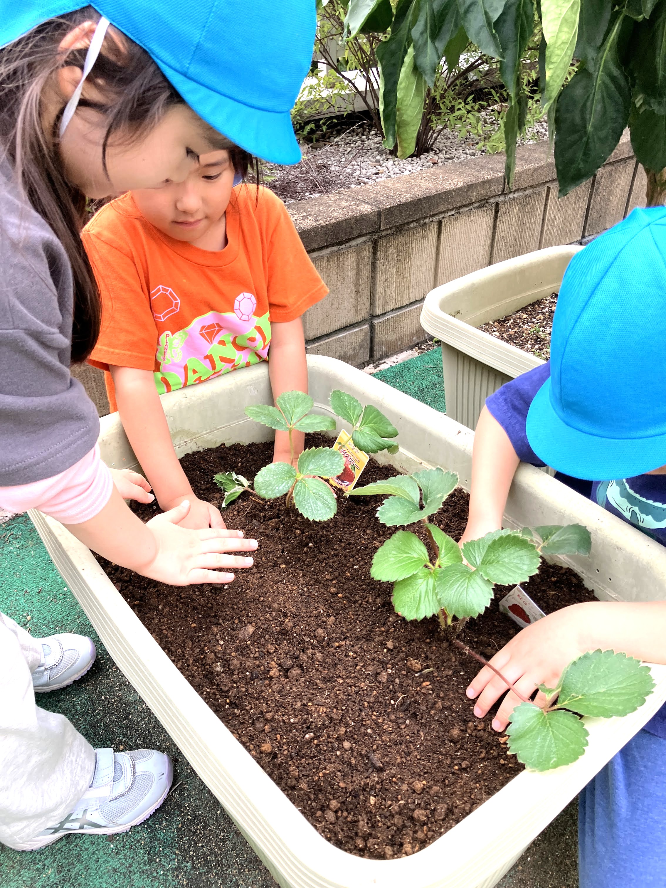 冬の収穫を楽しみに、園テラスの畑やコンテナに、かぶ・カリフラワー・いちごなどの苗を植えました。