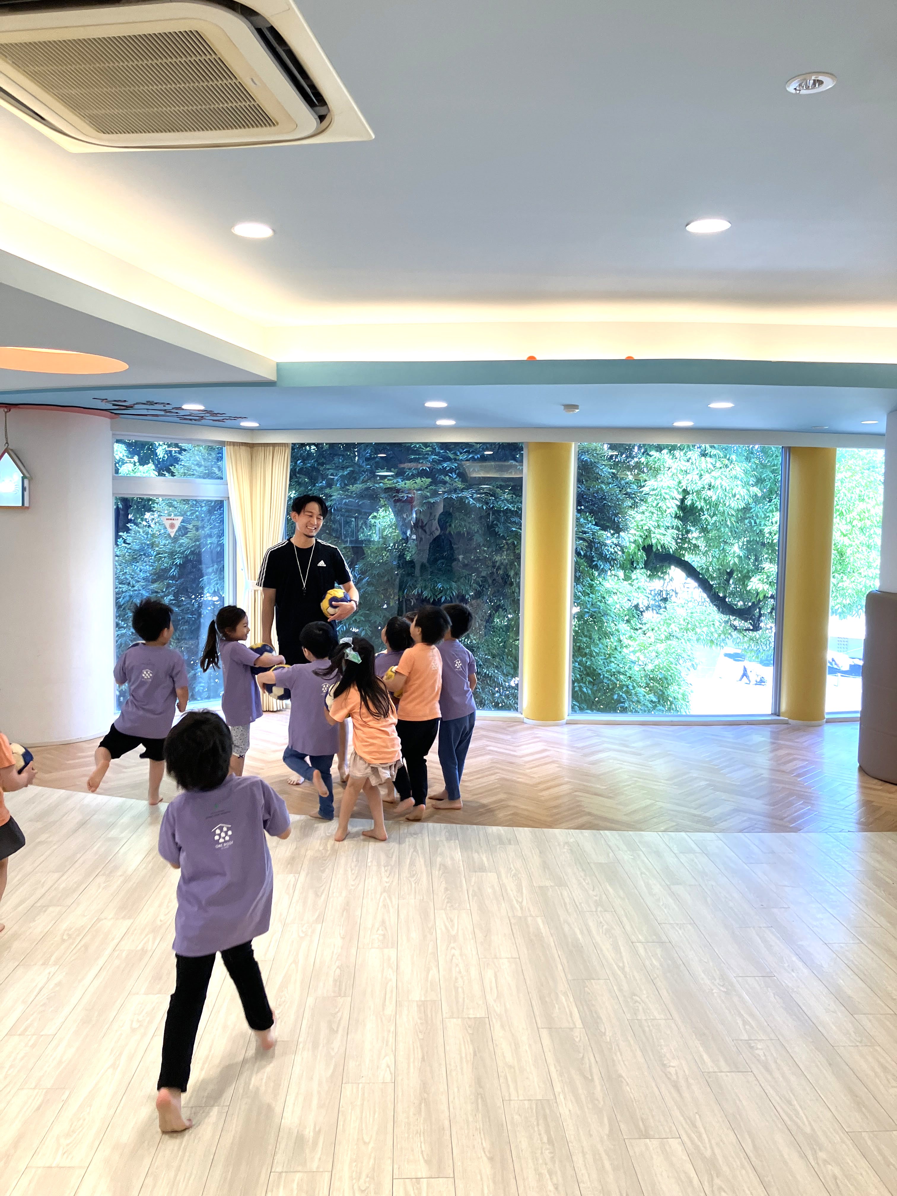 本来は近隣の「四谷ひろば」で行う予定でしたが、6月とは思えない厳しい暑さのため、熱中症リスクを考慮し、急きょ園舎内での実施に変更しました。