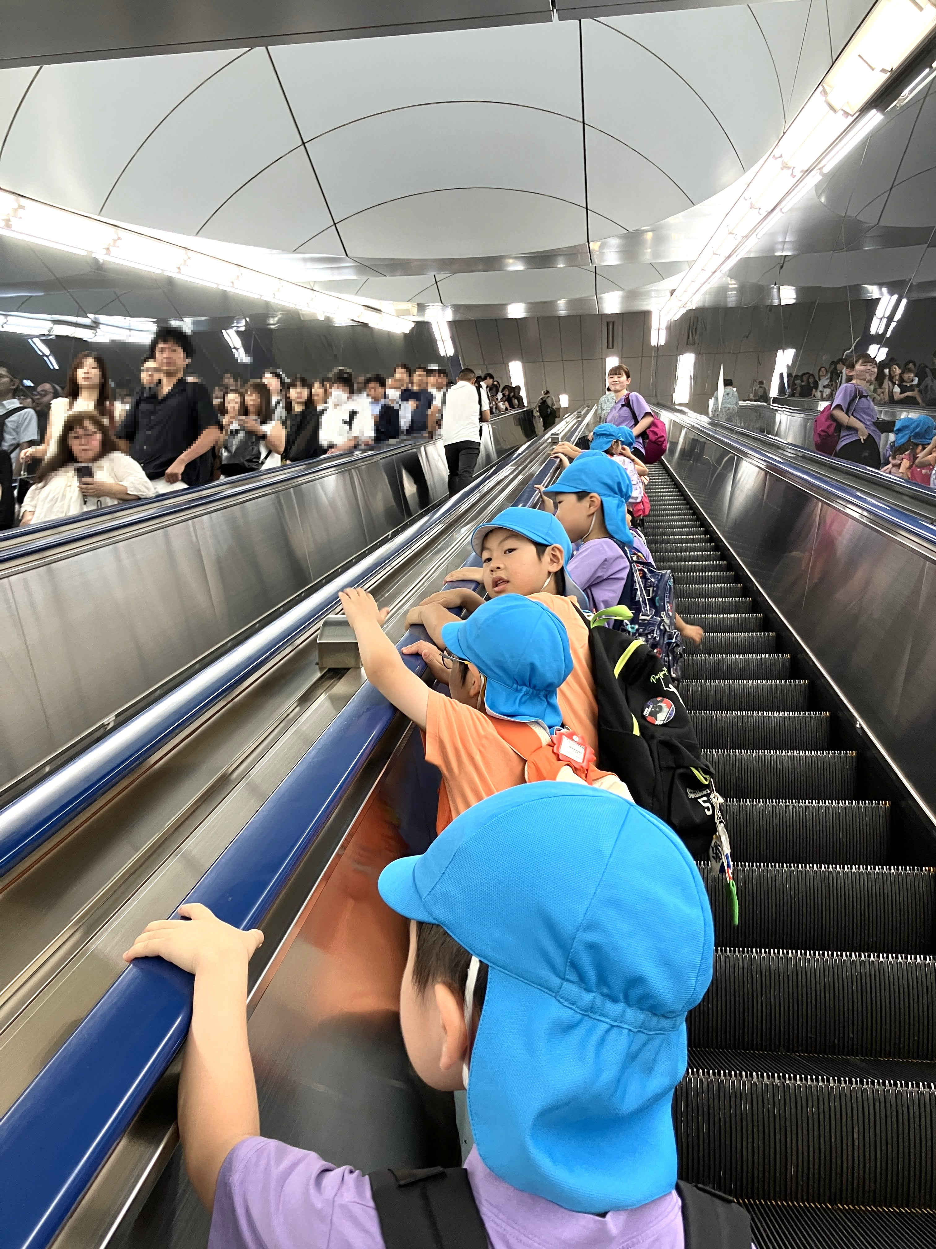 園を出たのは朝8時30分。通勤・通学で混み合う時間帯でしたが、子どもたちは手をつないで列をつくり、エスカレーターでは手すりをしっかり持って、落ち着いて3路線を乗り継ぎました。今日もまた子どもたちの成長を感じる一日でした。