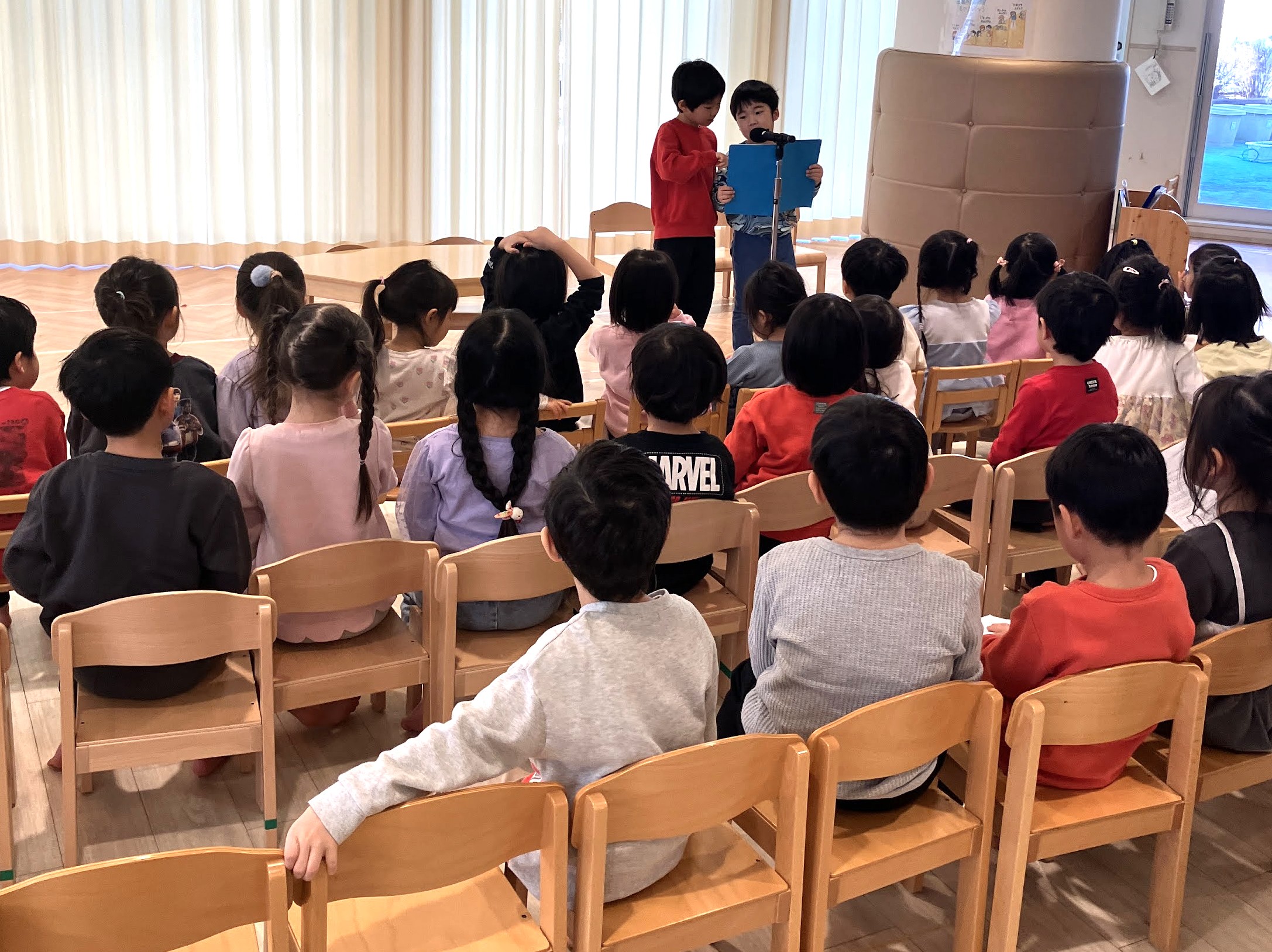 今日は、年長児によるオリジナル読み聞かせ会。