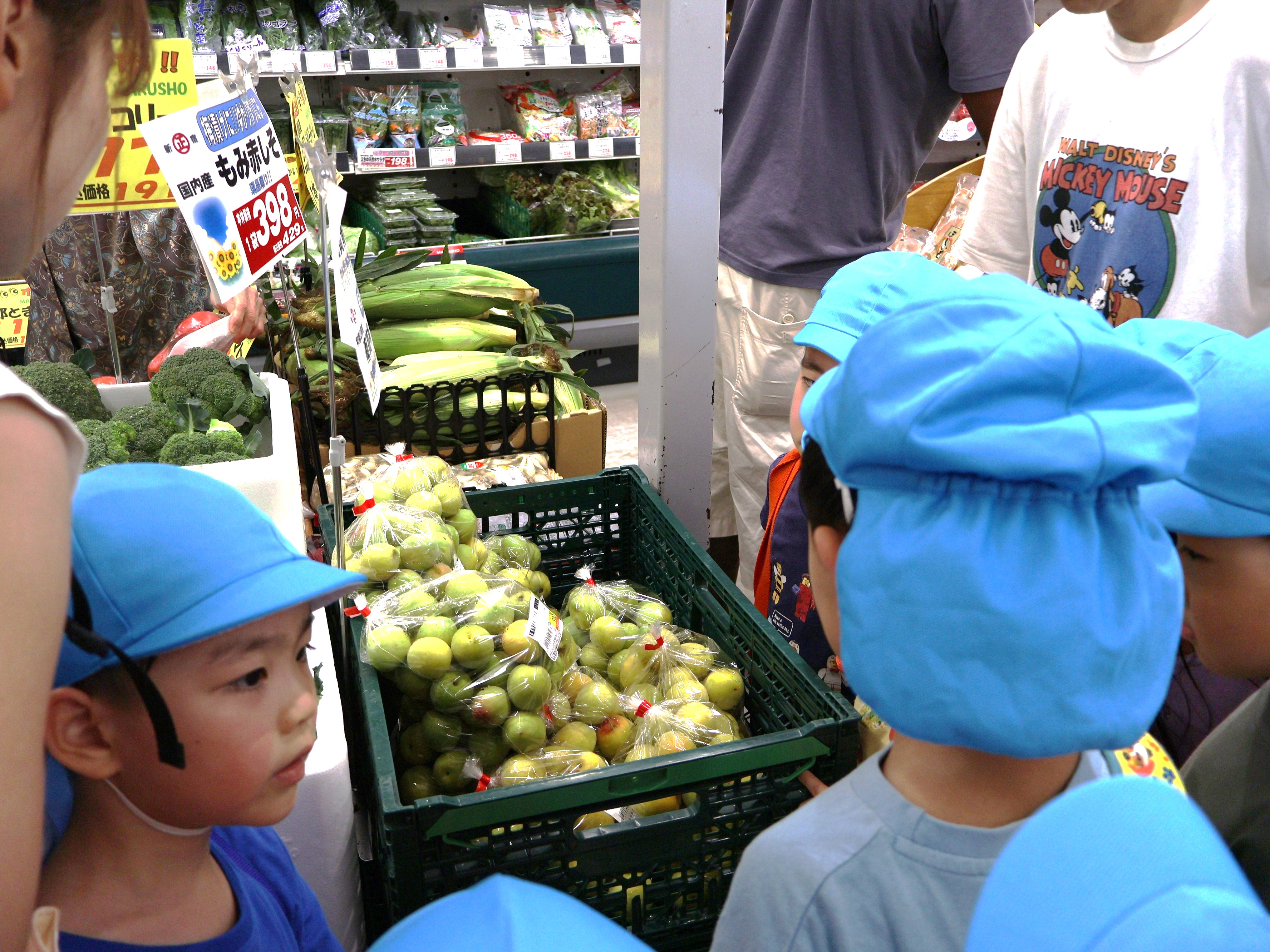 梅ジュースづくりに向けて、子どもたちが食材となる梅や氷砂糖を買いに行きました。
