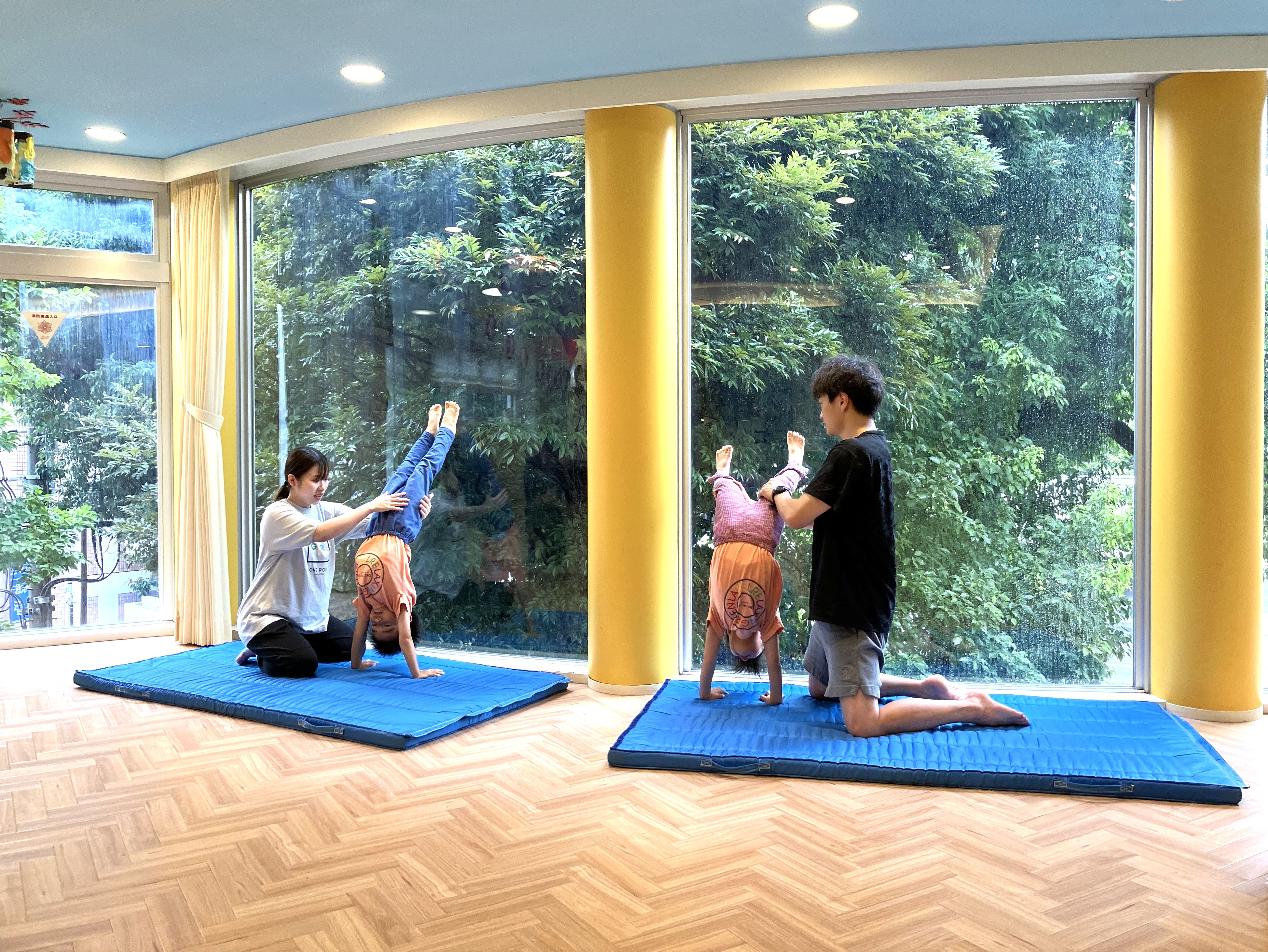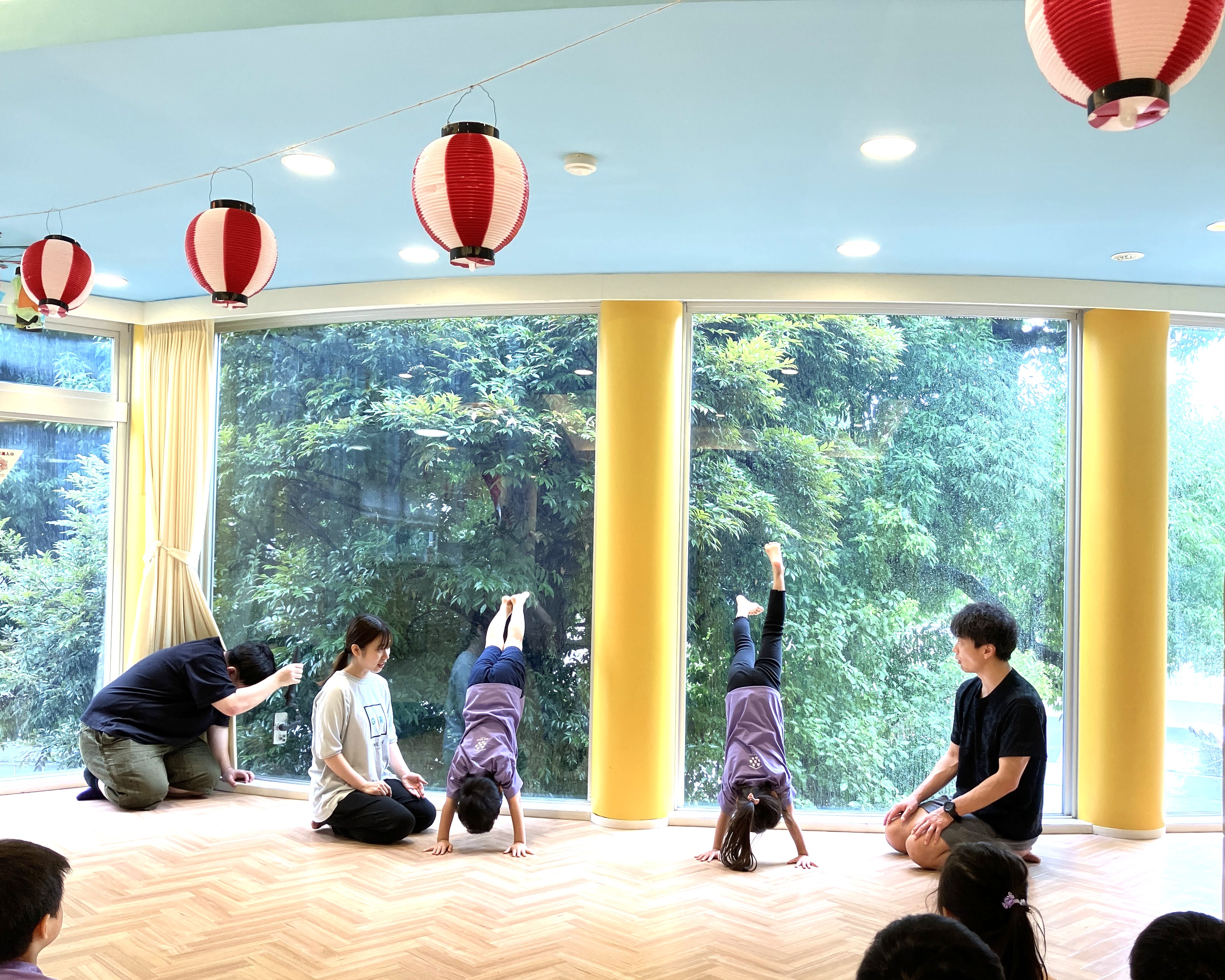 まっすぐに伸びた手足と、一生懸命に身体を支えようとする姿に、亀山コーチからも「初めての倒立とは思えない集中力」とお褒めの言葉をいただきました。