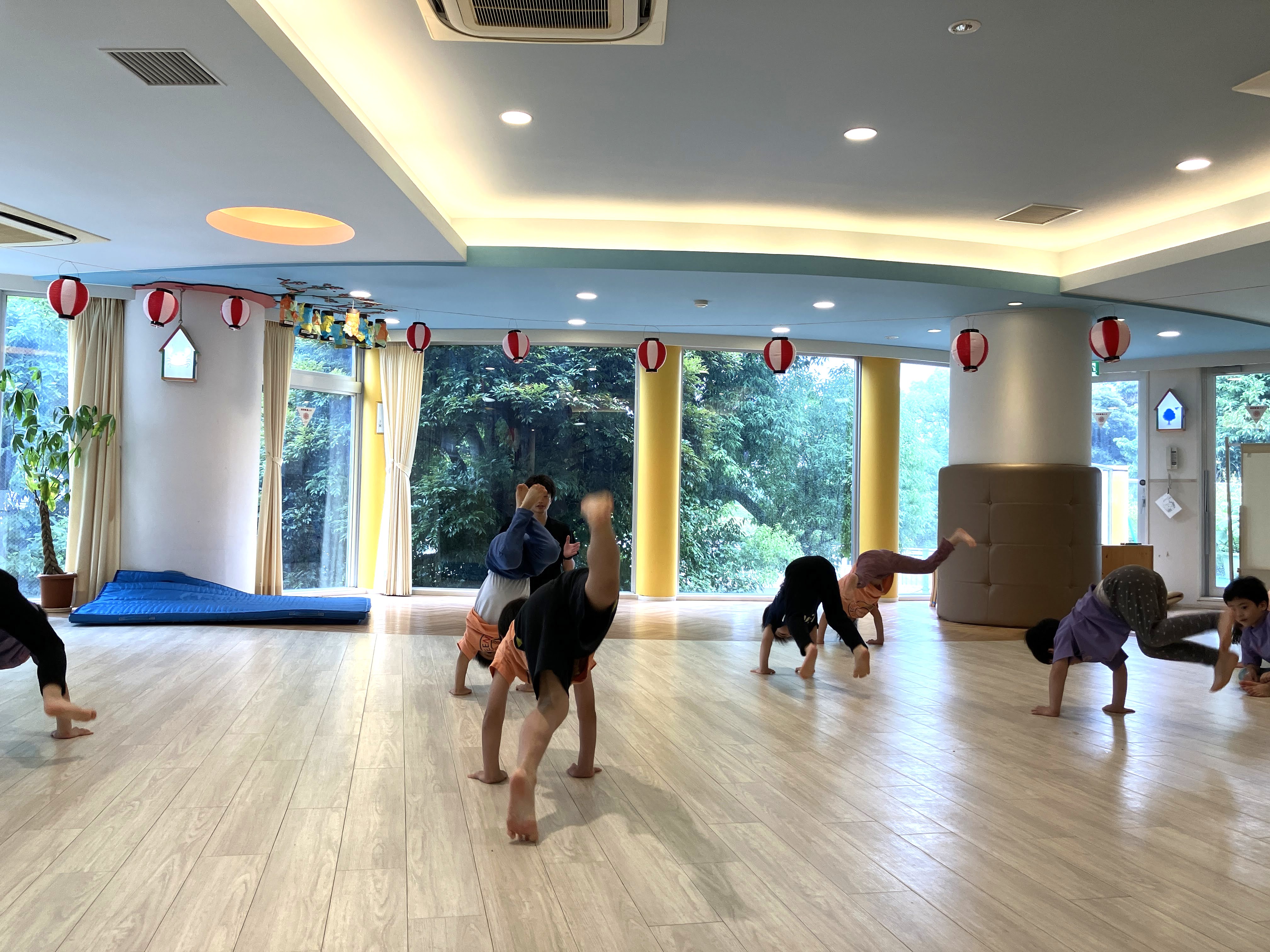 子どもたちは、ブリッジや倒立、前転といった慣れない課題に、次第に真剣な眼差しで向き合うように。