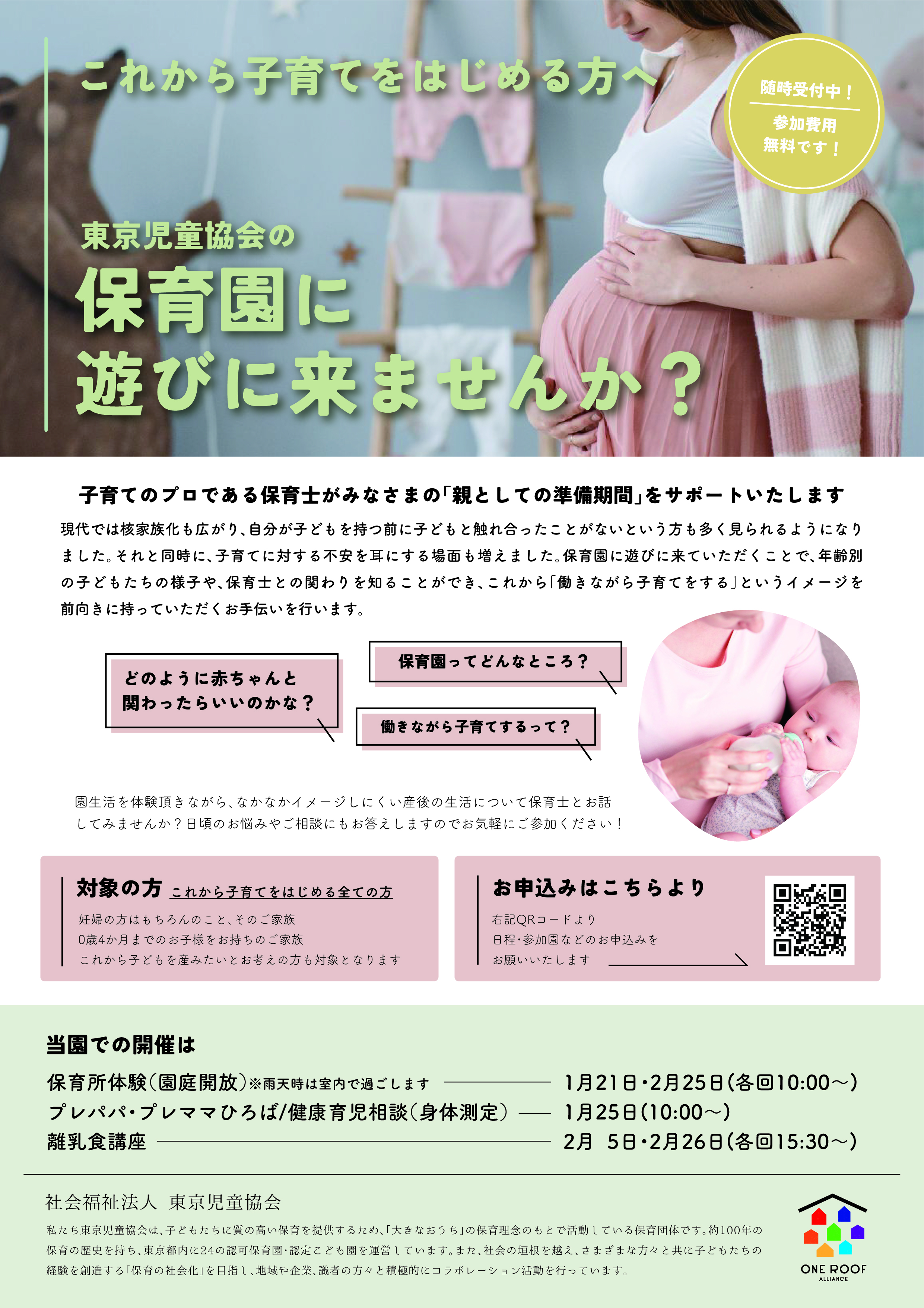 こちらはこれから子育てをはじめる方に向けた保育園体験イベントです。