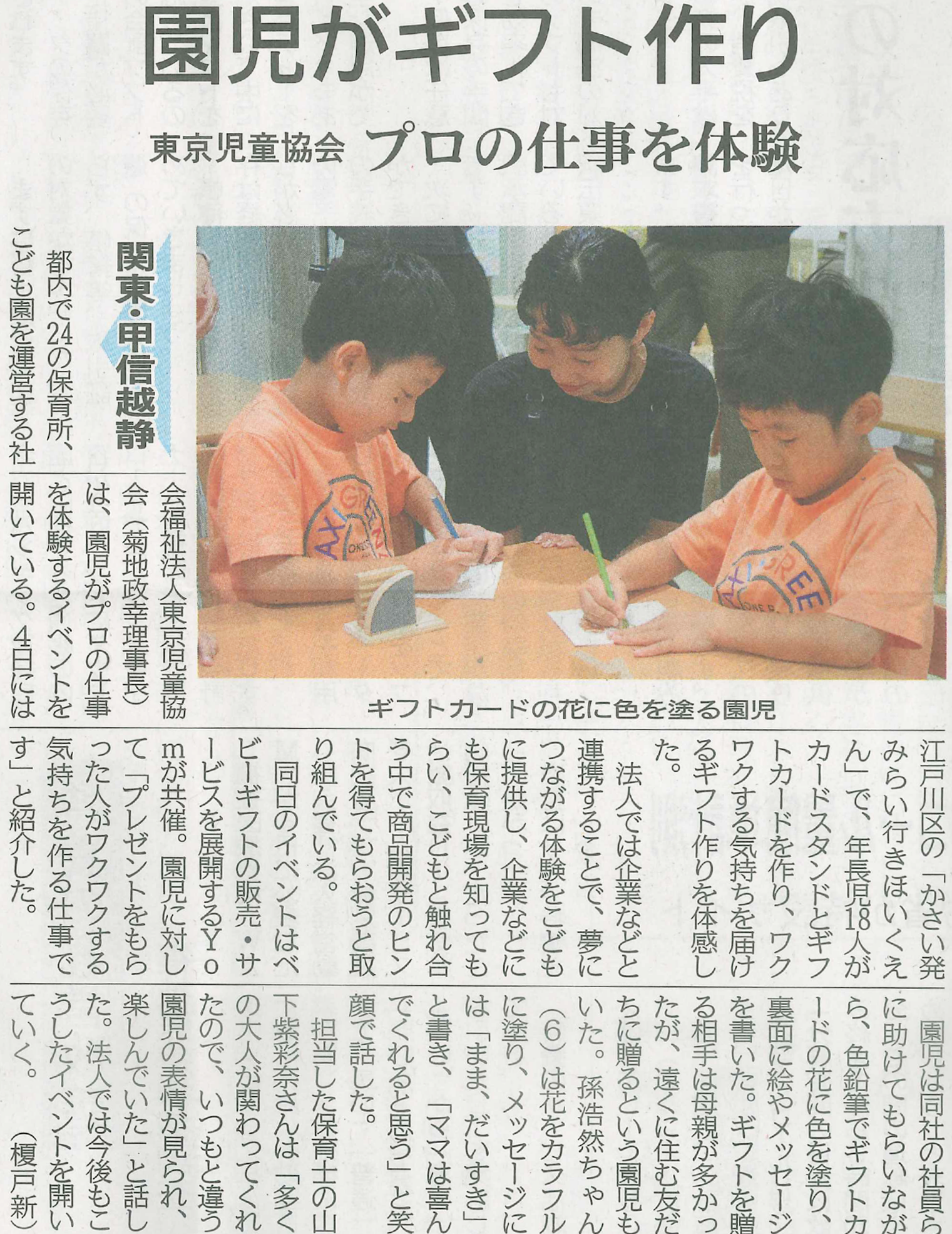 園児がギフト作り プロの仕事を体験(東京児童協会).福祉新聞.2024-10-17,p.4,福祉新聞社
