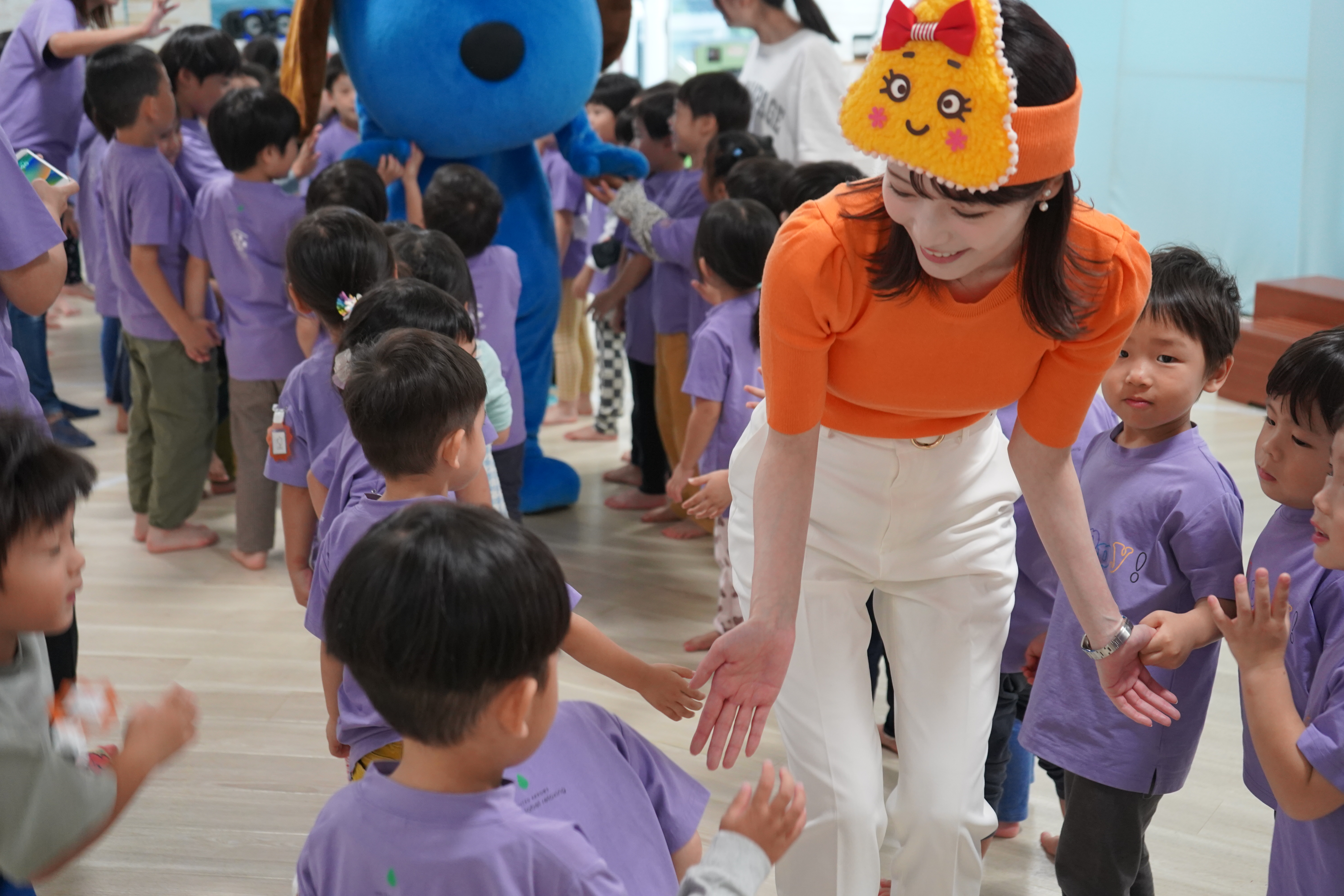 2025年10月16日(木)、花房山目黒駅前保育園333(品川区)にて、フジテレビの藤井弘輝アナウンサー、竹俣紅アナウンサーをお迎えし、食育出前授業「ハロー!どっこくん。」を開催いただきました。